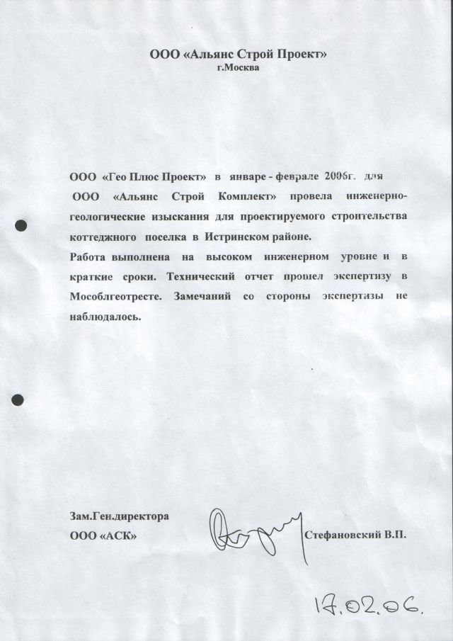 Комплекс изысканий под административно-бытовой комплекс, очистные сооружения, газопровод по адресу: МО, Ленинский район, пос. Антоновка. - ЗАО ПТФ"КУЛОН"