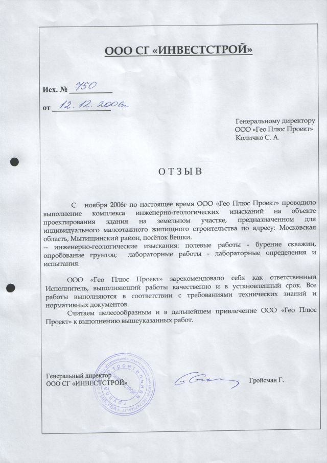 Отзывы клиентов и награды по инженерным изысканиям