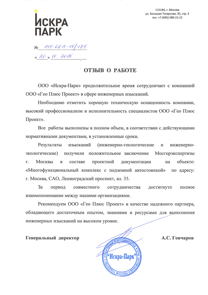 Адрес объекта: г. Москва, Ленинградский проспект, вл. 35
